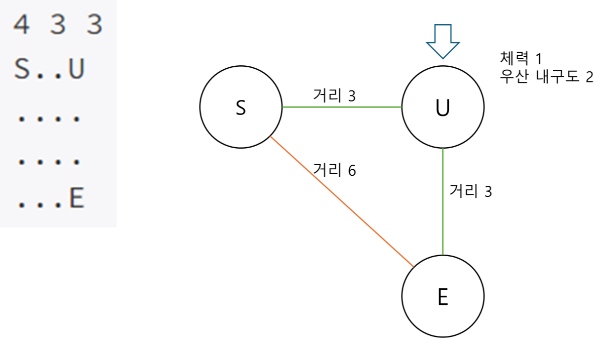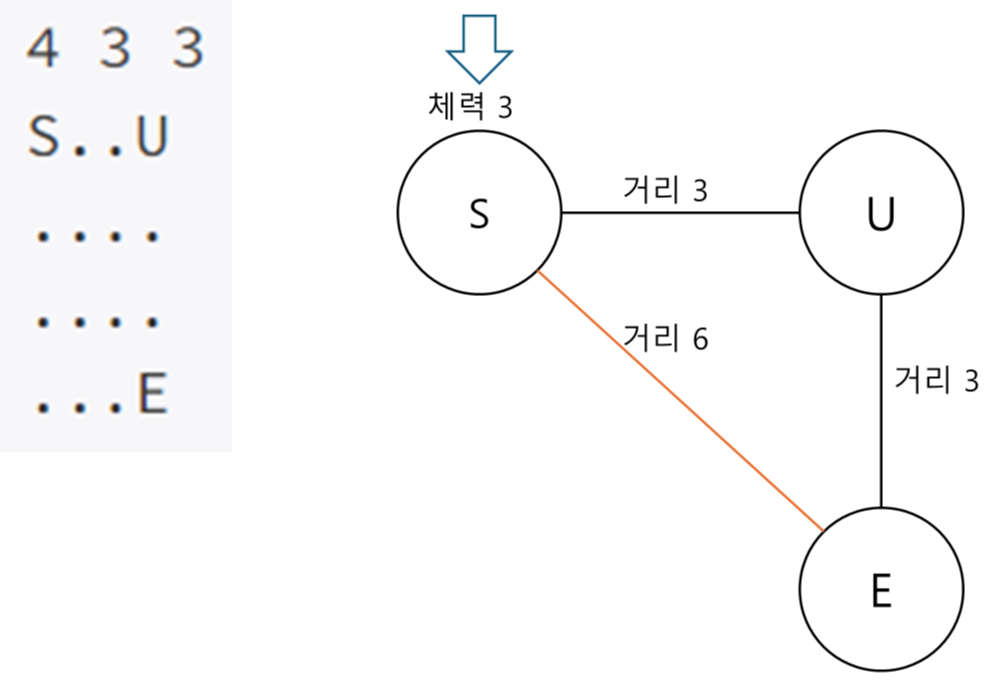현재 체력으로 E로 바로 갈 수 있기 때문에 바로 방문하는 케이스