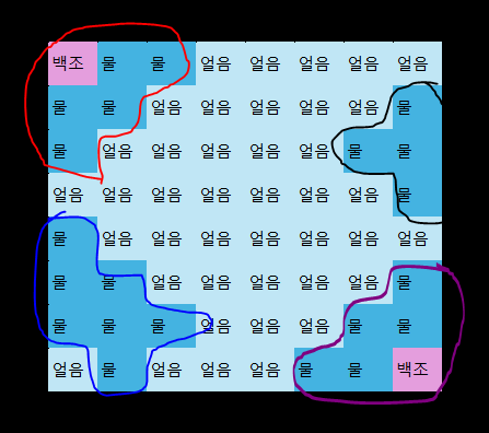 // 얼음을 녹이고 주변과 union 한다.